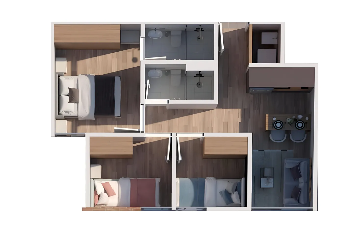 Aquí vas a encontrar apartamentos con una distribución muy bien aprovechada, ideales para que vivas cómodo, con espacios agradables para compartir y disfrutar tu día a día. Es un proyecto hecho para quienes buscan tranquilidad, buena ubicación y una opción de vivienda con excelente proyección.